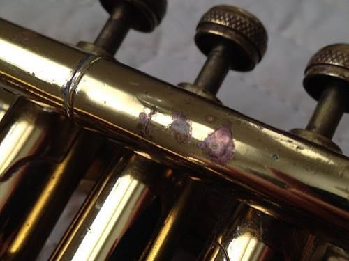 - Look for patches, which can sometimes indicate major underlying issues that aren't visible from the outside. However, sometimes what looks like a patch, is simply a preventative measure to slow the wear caused at the touch points on the trumpet. Knowing what you're looking for - or asking an expert - is important.